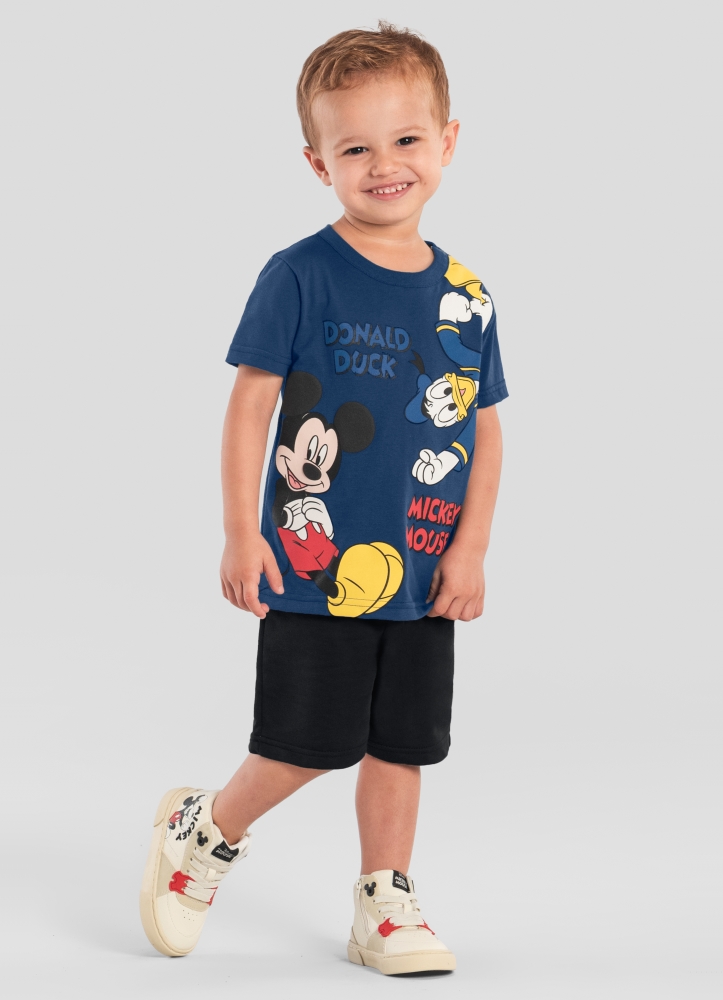 Deixe seu pequeno estiloso com a camiseta infantil menino em meia malha, que traz uma divertida estampa do Mickey Mouse. Com mangas curtas e gola redonda, é perfeita para os dias quentes. Confeccionada com materiais de qualidade, garante conforto e liberdade de movimento. Combine com shorts ou calças para um look descontraído e cheio de personalidade. Aposte em produtos licenciados que fazem a alegria da garotada!