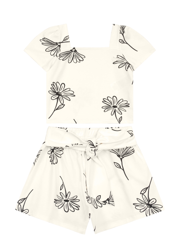 Deixe sua pequena ainda mais estilosa com este conjunto infantil da Mundi. A blusa regata em cotton estampado floral possui gola quadrada, perfeita para os dias quentes. O shorts conta com cós elástico e uma amarração decorativa, garantindo conforto e praticidade. Ideal para brincar e se divertir, esse look é uma escolha perfeita para o dia a dia. Combine com sandálias e um chapéu para um visual encantador e cheio de charme.