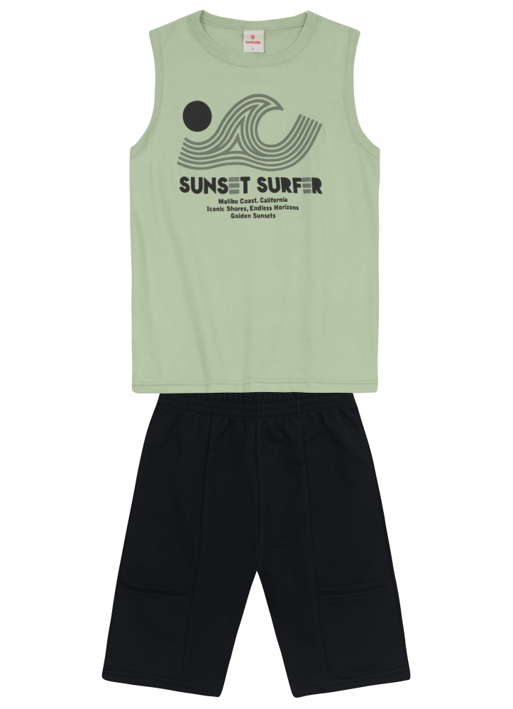 Deixe seu pequeno pronto para a diversão com o conjunto infantil da Brandili. A regata em meia malha traz uma estampa de surf em relevo e gola redonda, perfeita para os dias quentes. A bermuda em moletinho com cós elástico garante conforto e liberdade de movimento. Ideal para brincar ao ar livre ou relaxar em casa, esse look é uma escolha estilosa e prática. Combine com tênis e um boné para um visual descolado que vai fazer sucesso!