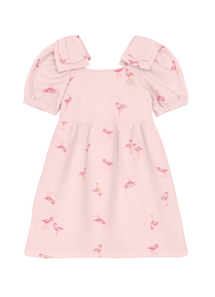 Estilo Único: O design com flamingos e mangas bufantes a fará se sentir uma verdadeira princesa moderna.